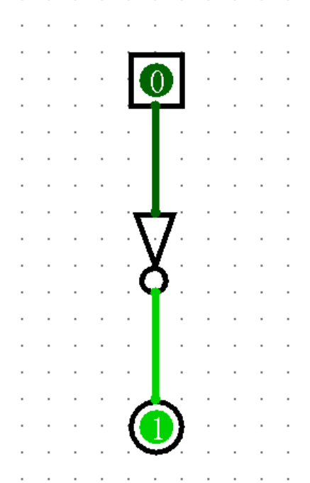 同样地,非门和输出引脚也可以调整方向。最终我们就得到了下图所示的竖着的非门。