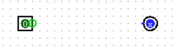 如图所示,方形的为输入引脚,用户可以在操作模式下通过单击更改其输入的值;圆形的为输出引脚,用于显示当前电路的输出结果。由于此时输出引脚并没有被连接到电路中,因此输出为蓝色的 X(即不确定值)。