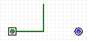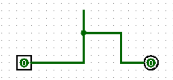 为了让输出引脚输出确定的结果,我们可以将其与输入引脚直接相连。在编辑模式下,鼠标悬停在输入引脚的绿色标记点上,待出现标记后按住左键,拖动鼠标,松开后即可绘制连线。连线可以分支、转弯等。