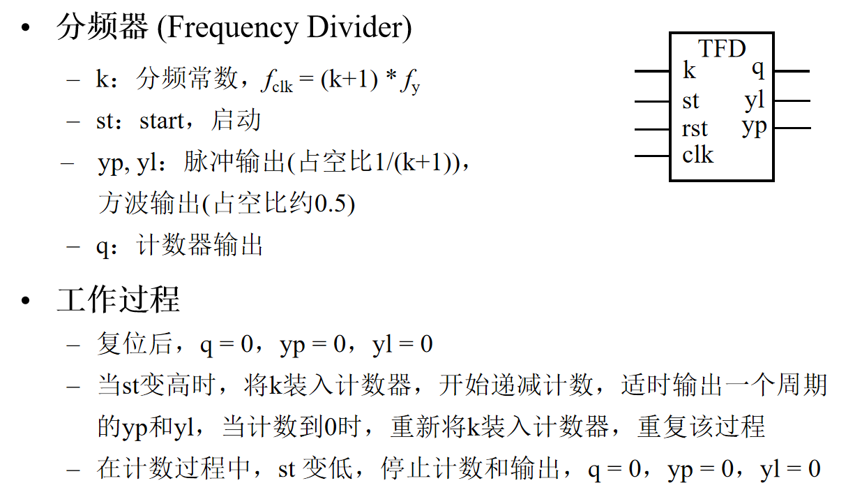 分频器也是一种特殊的计数器,它通过对时钟进行计数,输出一个较低时钟频率的新时钟,从而实现对于时钟频率的控制。作为一个分频器而言,我们需要实现以下几个功能: