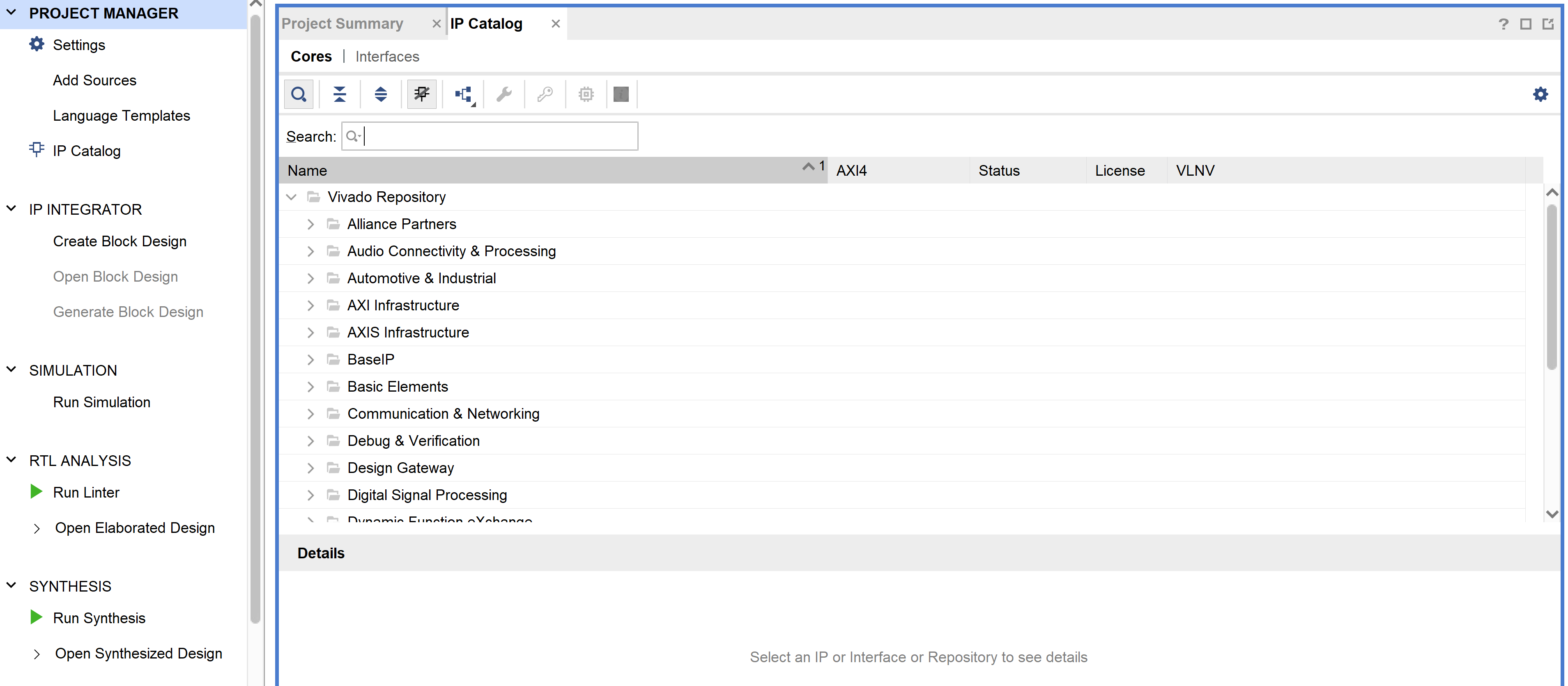 进入Vivado,点击左上角的IP Catalog,进入IP核生成器: