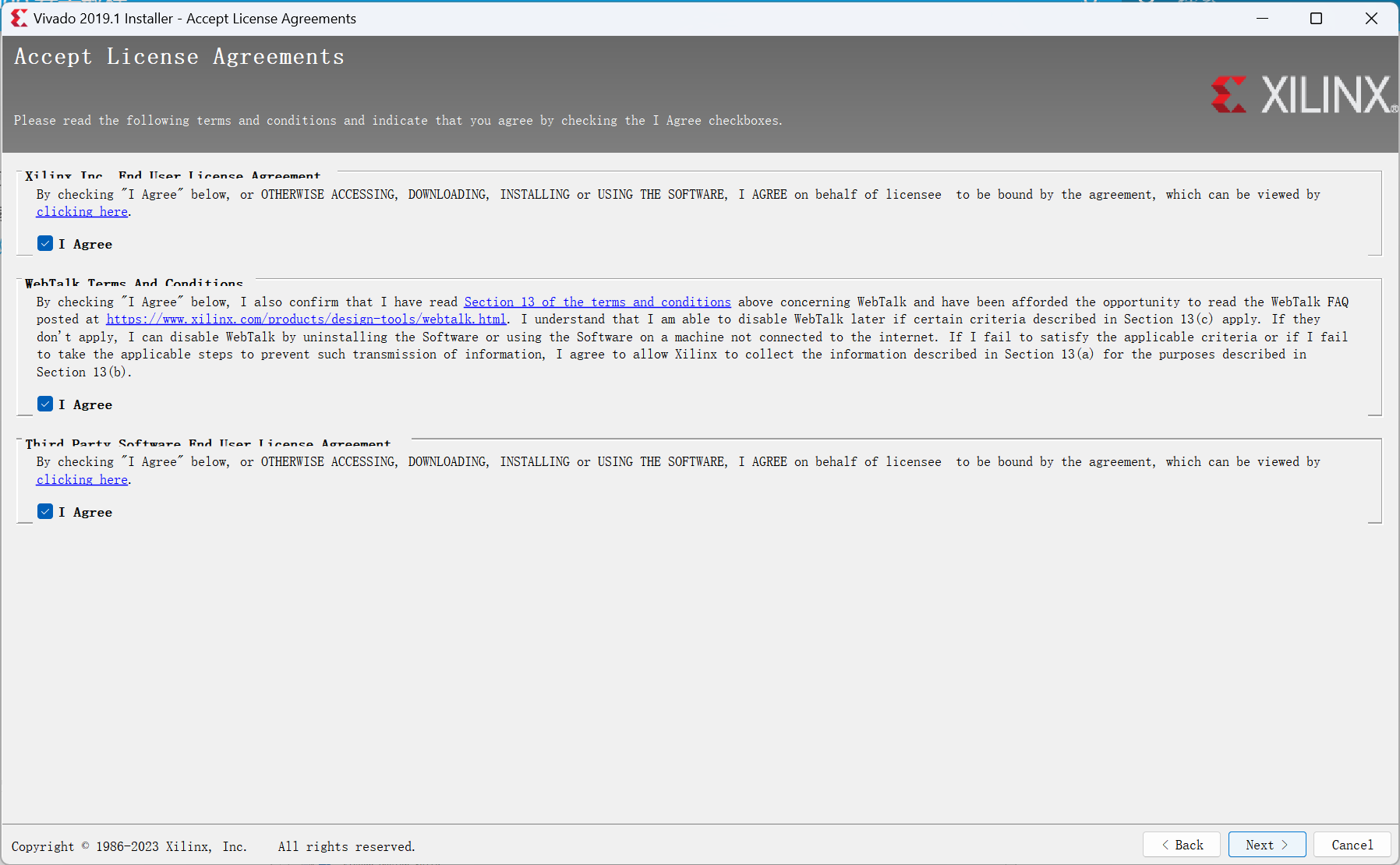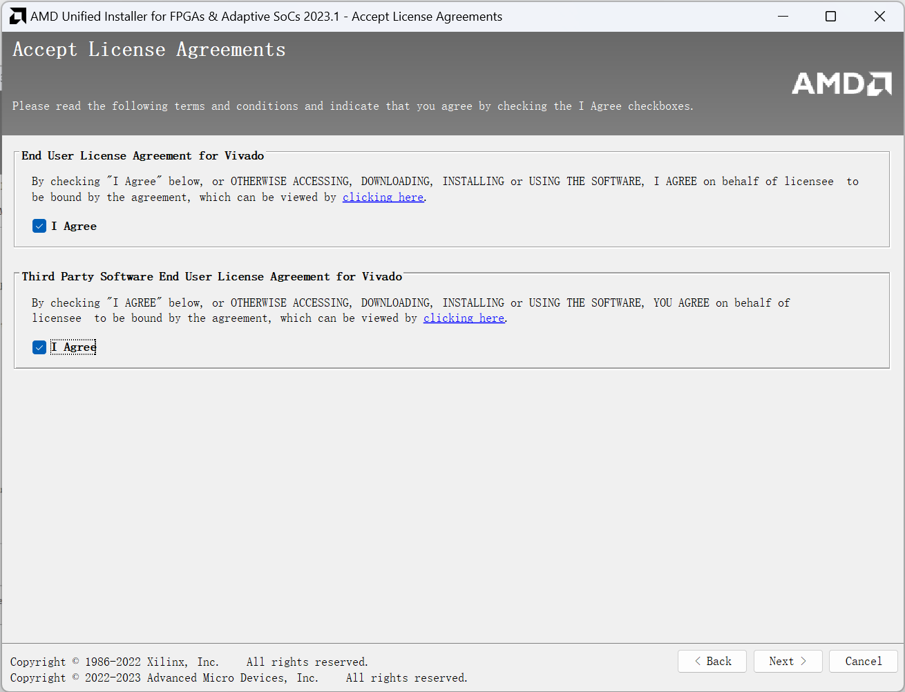 接下来需要同意许可协议。设定好相关内容后,单击 Next