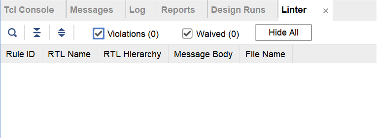 后会在界面下方打开一个 Linter 窗口。如果这里没有弹出 Warnings 以及 Critical Warnings 则表明目前的设计没有明显的问题。