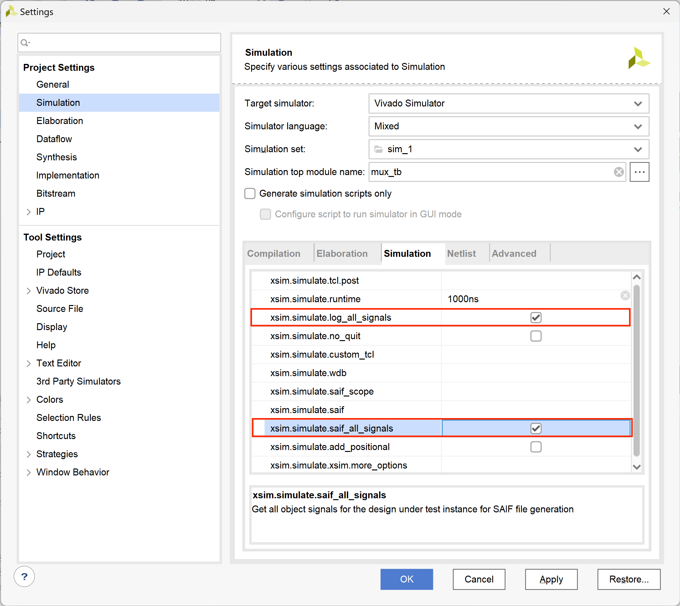行为仿真是一种在逻辑上近乎正确,而在物理上可能出现问题的仿真,它假定设计的最长组合逻辑通路的延时一定小于时钟周期,因此它并没有考虑到逻辑延迟大于时钟周期的情况。如果想要考虑逻辑延迟,那么就需要等到实现电路后运行时序仿真。由于 Vivado 编译器会将信号重命名或元件重排,因此时序仿真很有可能如同”天书”,我们一般还是以看行为仿真为主要的纠错手段。