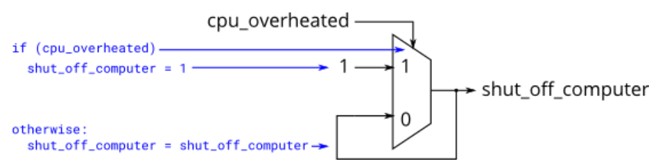 - 输入信号 cpu_overheated, 位宽 1bit,控制 shut_off_computer 信号。
