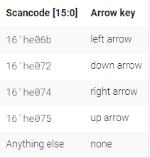 假设您正在构建一个电路来处理游戏中 PS/2 键盘上的扫描码。现在给定接收到的扫描码的最后两个字节,您需要指示是否按下了键盘上的一个箭头键。这涉及到一个相当简单的映射,包含五种可能的情况:上、下、左、右,以及不属于任何一种。