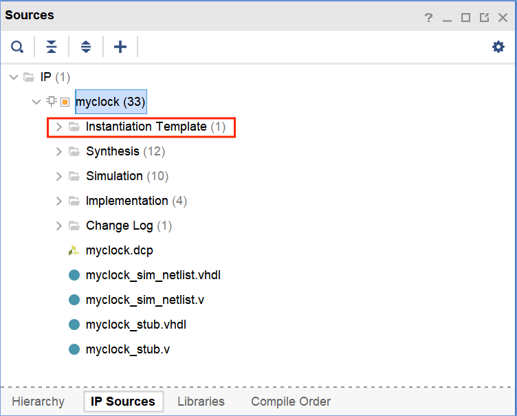 在 IP Sources 分窗口下单击 Instantiation Template