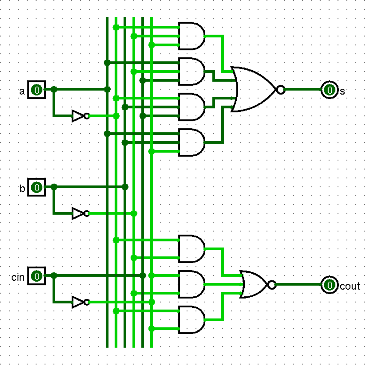 input a, b, cin,