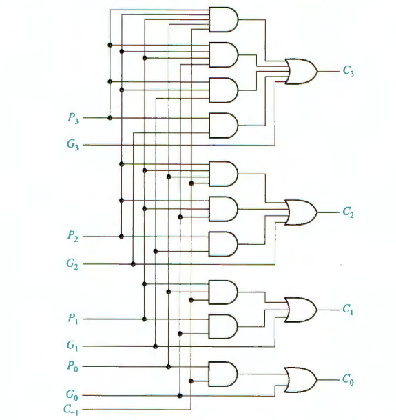 C_3=G_3+P_3C_2=G_3+P_3G_2+P_3P_2G_1+P_3P_2P_1G_0+P_3P_2P_1P_0C_{-1}