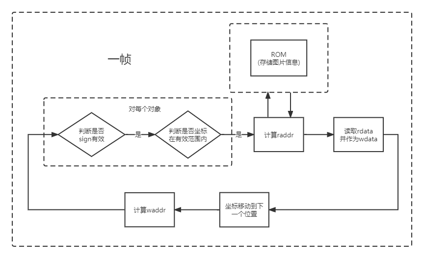 此外,在画布刷写时对每个对象都进行图像的选择,会导致代码冗杂,延迟也会相应增大。你可以考虑进一步分层,为每个对象维护一个 BRAM,将要显示的图像信息存储在 BRAM 中,画布刷写时只需要读取对应对象的 BRAM 中的信息即可,而无需考虑对象的实际状态。
