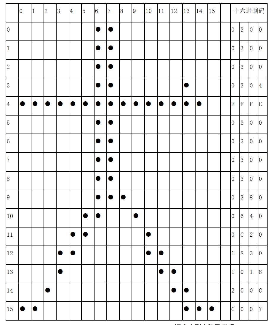 ,后面的十六进制字形码可写作任意行,顺序正确即可。