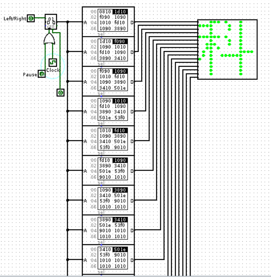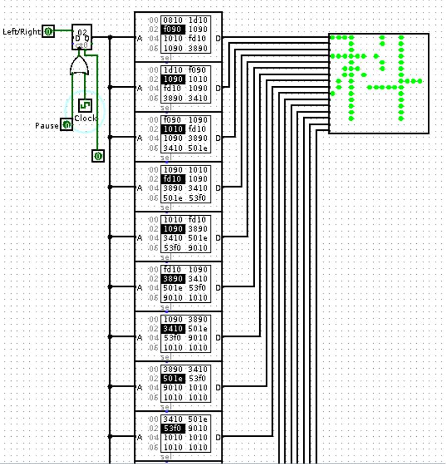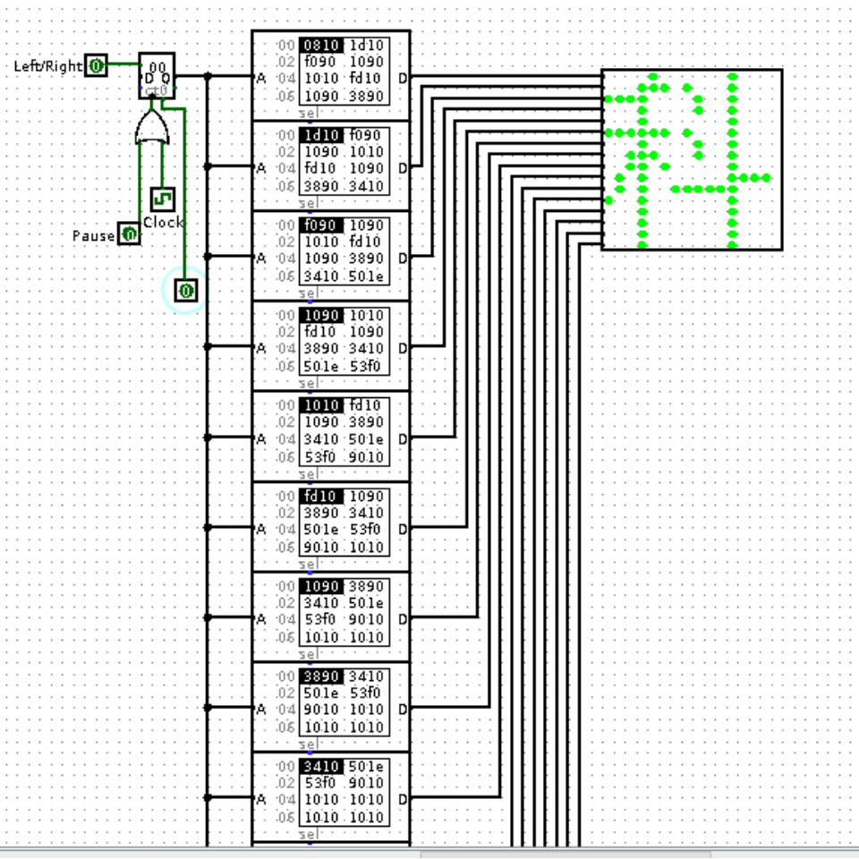 实际生活中,我们见到的 LED 显示屏往往具有滚动显示的功能,用较少的 LED 屏幕显示一段较长的文本。现在,我们也可以在 Logisim 中实现类似的功能。
