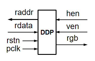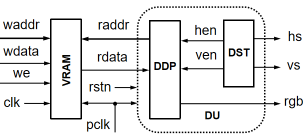 hen, ven:水平显示有效,垂直显示有效。由 DST 产生,根据这两个信号,我们可以得到当前的像素坐标。