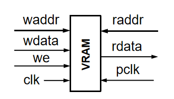 画布用于存储绘画信息,用双端口 BRAM 实现。由于 FPGA 的容量限制,我们这里使用的存储容量为 32K\(\times\)12。